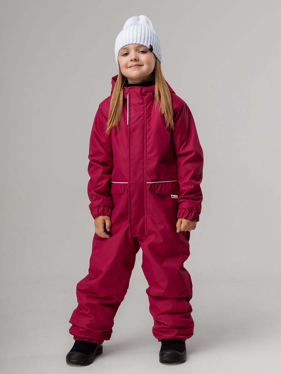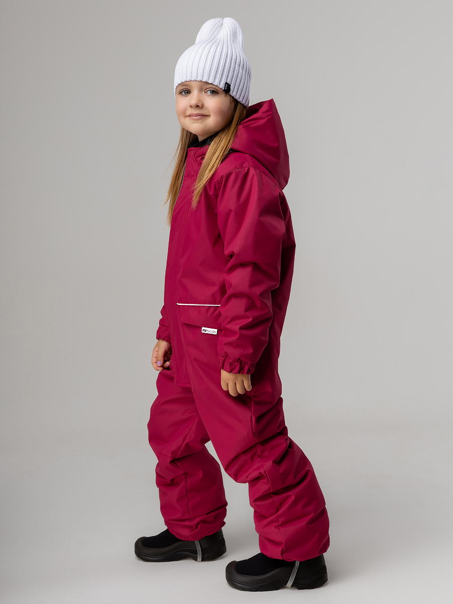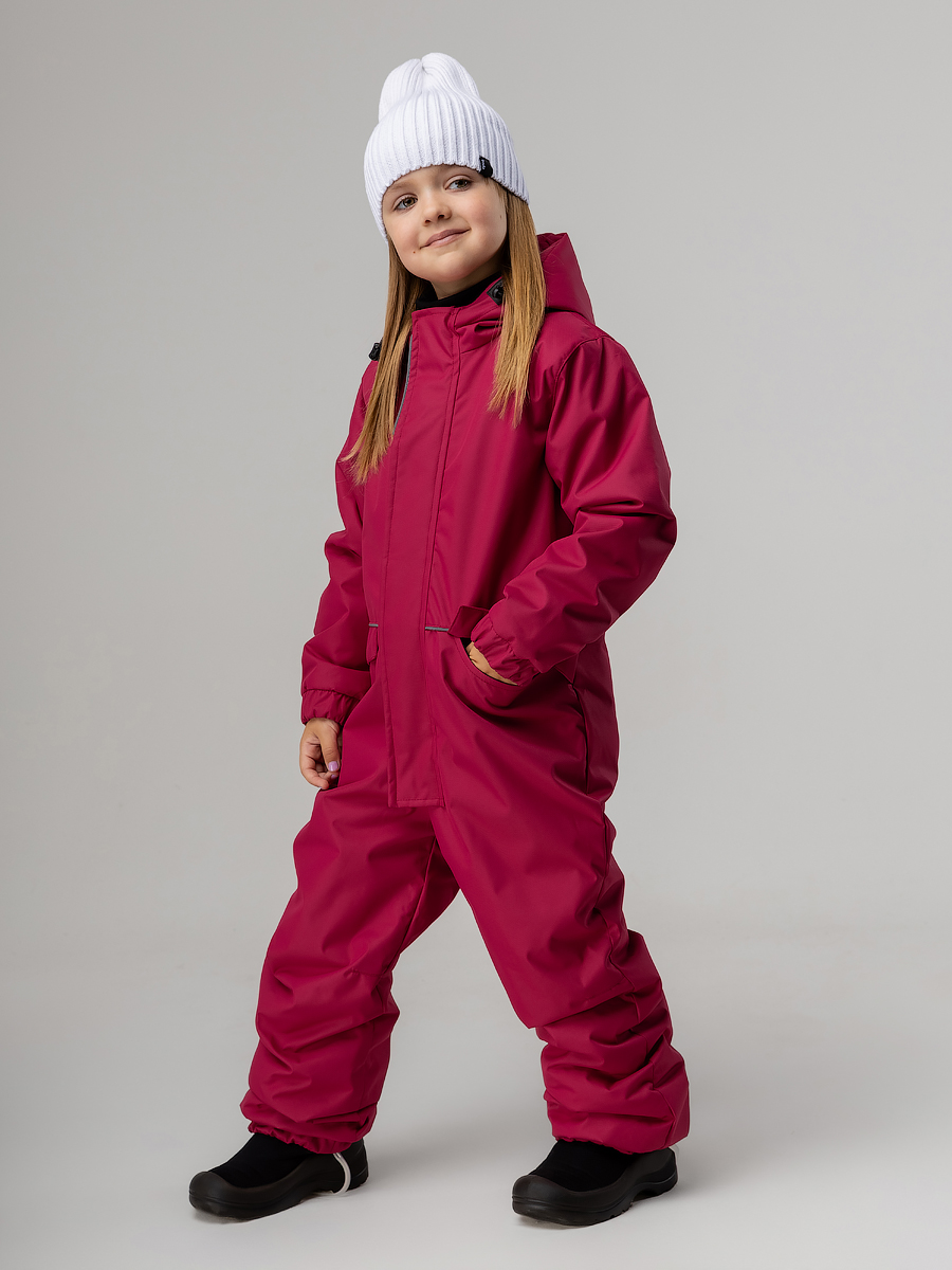 Комбинезон утепленный с флисовой подкладкой. Внутри комбинезона имеется эластичная лямка. Комбинезон на молнии, закрытой ветрозащитной планкой, капюшон с регулировкой по диаметру. На полочке располагаются два кармана закрытые клапаном. Низ изделия снабжён дополнительными штрипками. Состав: мембранная ткань 5000 мм/5000 г/м², 100% полиэстер, утеплитель 150 г/м², подкладочный материал флис 100% полиэстер. Температурный режим от -5 до -15 гр., в зависимости от индивидуального теплообмена ребенка и промежуточного слоя одежды.