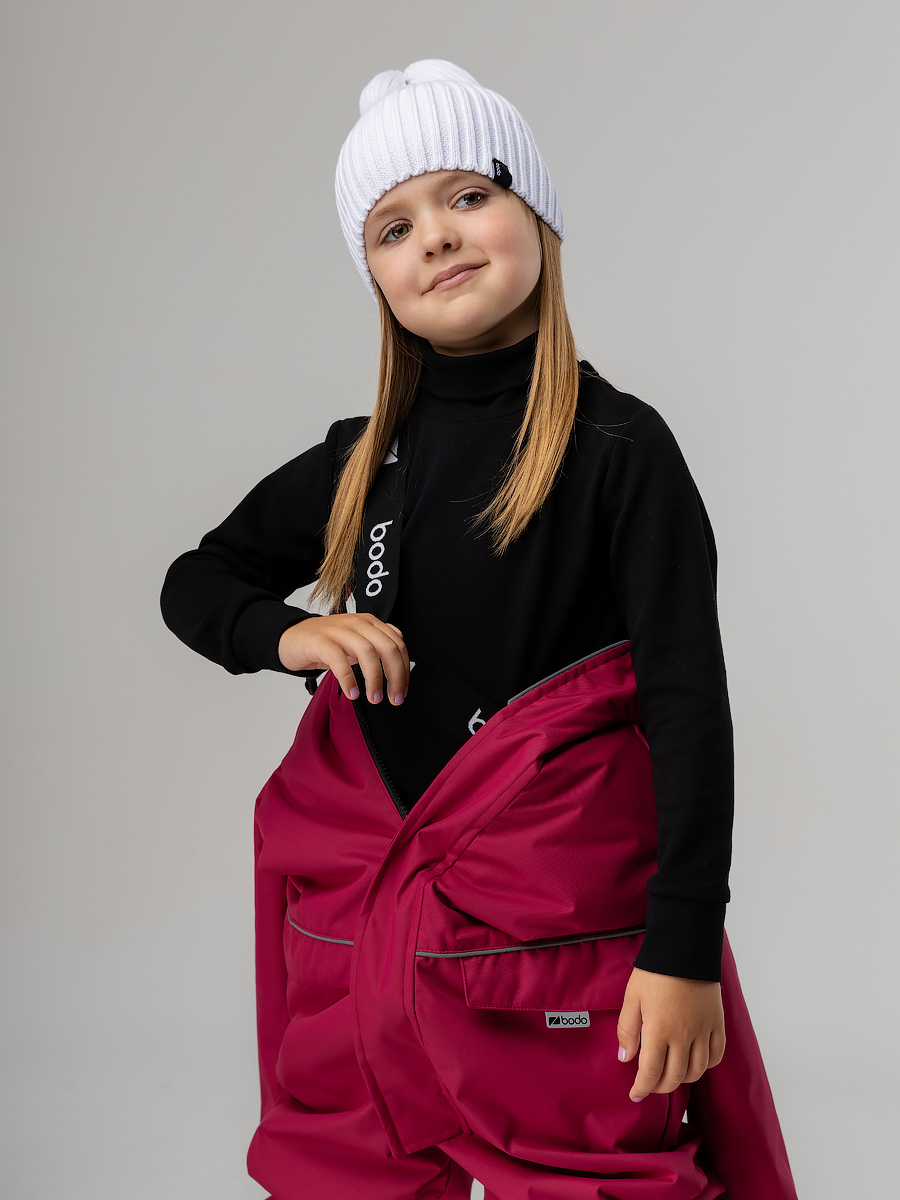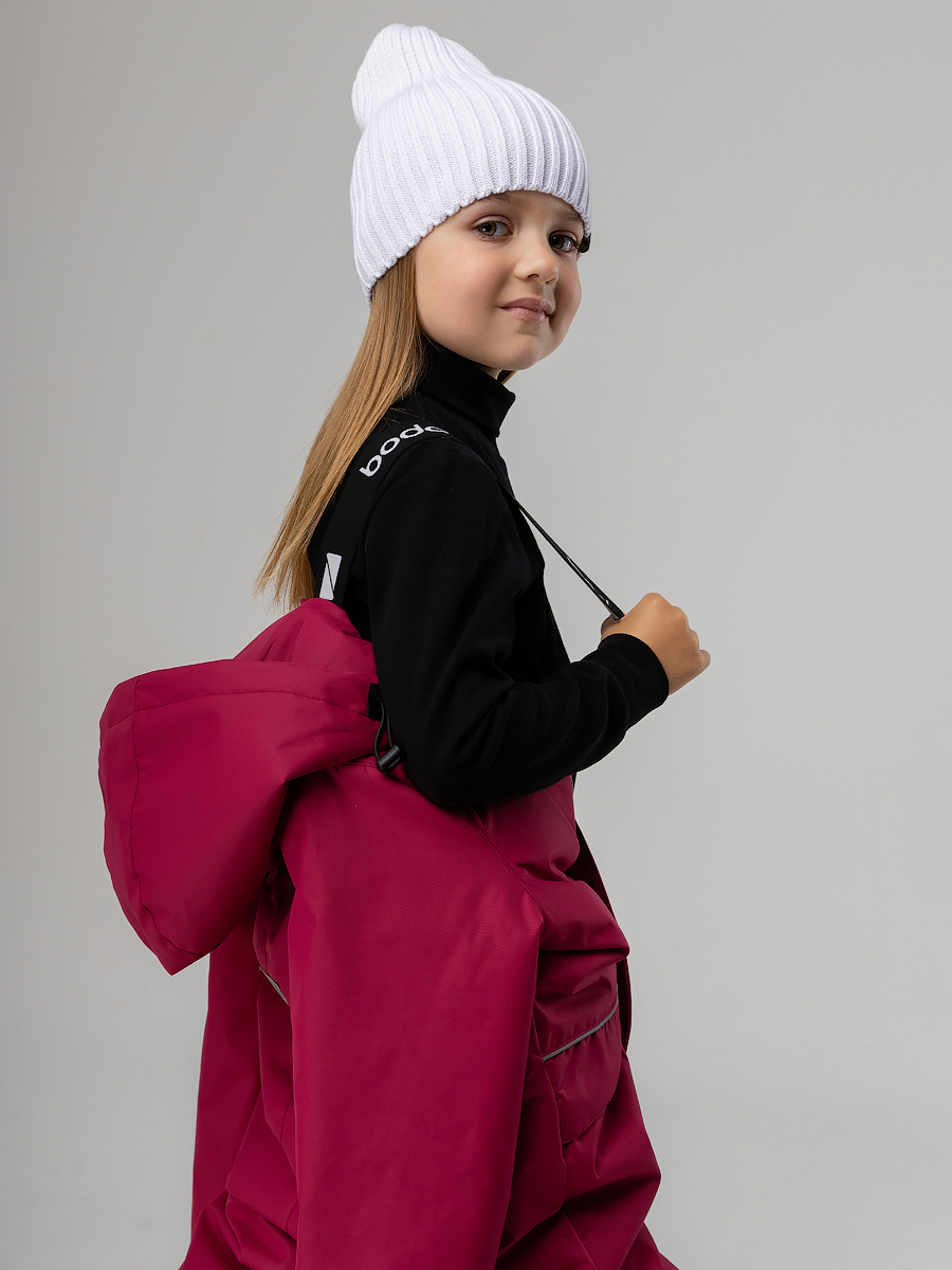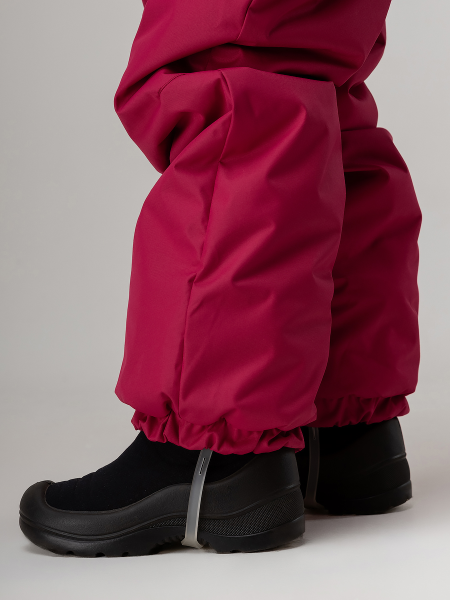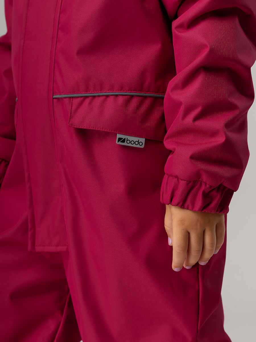 Комбинезон утепленный с флисовой подкладкой. Внутри комбинезона имеется эластичная лямка. Комбинезон на молнии, закрытой ветрозащитной планкой, капюшон с регулировкой по диаметру. На полочке располагаются два кармана закрытые клапаном. Низ изделия снабжён дополнительными штрипками. Состав: мембранная ткань 5000 мм/5000 г/м², 100% полиэстер, утеплитель 150 г/м², подкладочный материал флис 100% полиэстер. Температурный режим от -5 до -15 гр., в зависимости от индивидуального теплообмена ребенка и промежуточного слоя одежды.